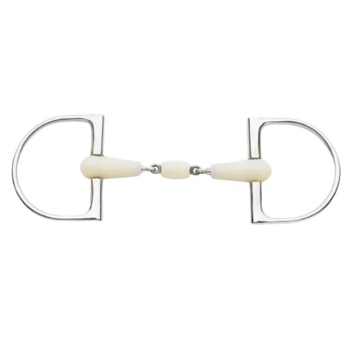 The Happy Mouth Double Jointed Roller Pro King Dee Ring Bit has stainless steel Dee rings. With the polymer coated mouth and lozenge, this double jointed bit softens the “nutcracker” effect. Unlike the regular Happy Mouth King Dee rings, the “Pro” Dee cheeks do not have the Happy Mouth covering on the cheeks of the Dee rings. This makes it a nice bit for the show ring. Because of this configuration, this bit will measure approximately 1/4 inch less than the stated size so please take this into consideration when ordering. Available at Mary’s in 5, 5 , 5 and 6 inch sizes.