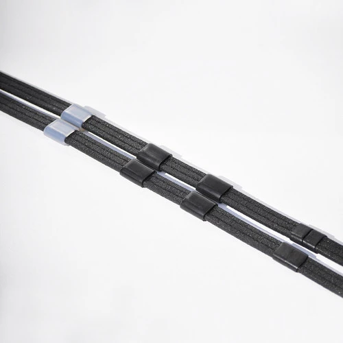 Reins Adjust Dressage Reins from In Horse We Trust use a high tech elastomer to improve your grip and communication. Extra comfortable dressage style Reins Adjust will not get hot, melt, or become sticky and are UV resistant. In fact, the elastomer grip material withstands temperatures ranging from -60 degrees to 200 degrees! Reins Adjust flexible grip reins offer a level of performance superior to rubber reins. The fronts and buckle end of the Reins Adjust Dressage Reins are durable vegetable tanned full grain soft, supple leather. Reins Adjust flexible grip black reins offer superior performance and comfort.
