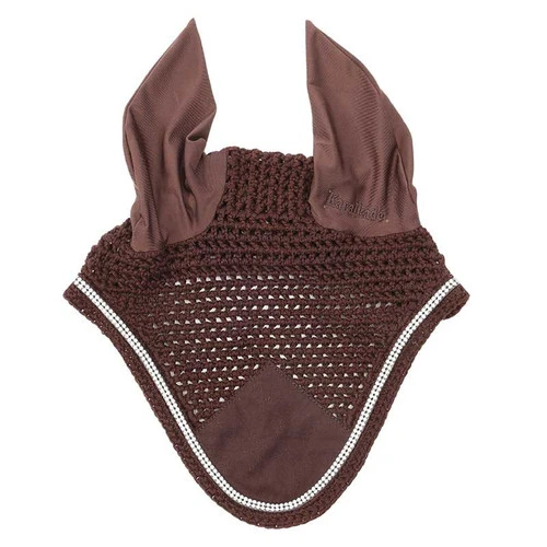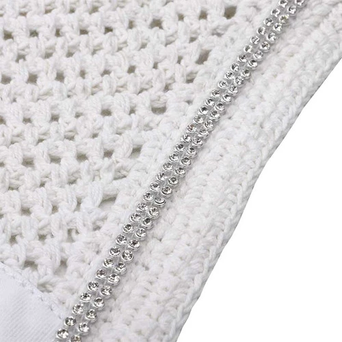 Kavalkade Crystal Fly Bonnet has a classic cotton crochet design with soft stretchy ears and luxurious trim. The horse size ear net from Kavalkade has a stylish double row of rhinestone trim plus a plain panel in front that could be embroidered.