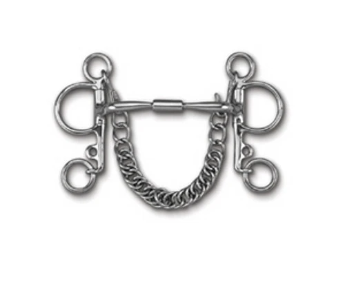 Myler Pelham Comfort Snaffle Wide Barrel Bit has 4.5″ Pelham cheeks and an MB 02 Myler mouthpiece. The comfort snaffle pelham bit is made with stainless steel and has copper inlay for bit acceptance and softening. This Pelham is considered a Myler LEVEL 1 bit for inexperienced horses and those who have been ridden in collapsing snaffles. The wide barrel bushing of the comfort snaffle prevents the bit from collapsing into a V on the horse’s tongue. This also prevents pinching of the bars and lips. Pelham Comfort Snaffle is available in Size 5.