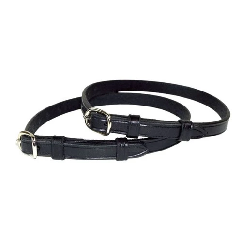 Nunn Finer Leather Spur Straps in black leather are standard ladies size in 18″ length. These handsome English spur straps are classic and well-made with rounded buckles and double leather keepers.