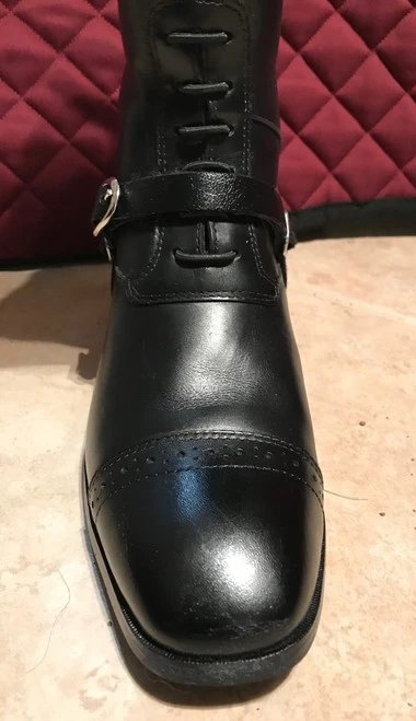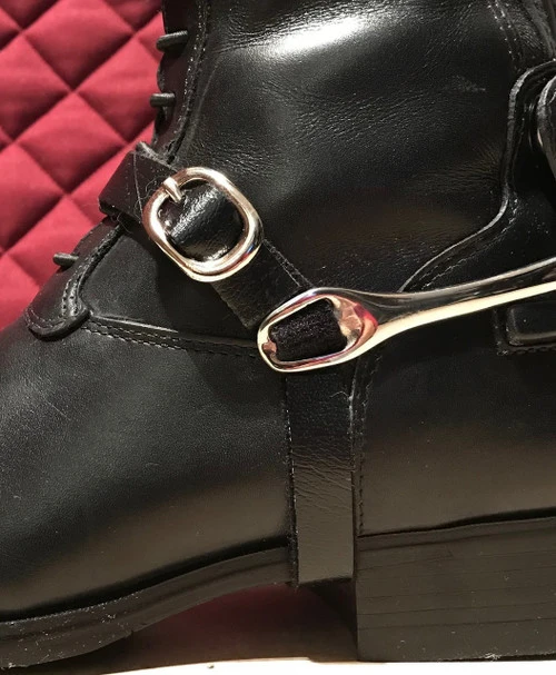“On The Buckle” Spur Tech Spur Straps look like a traditional spur strap but have Spur Tech’s advanced design and a decorative silver buckle. On The Buckle Spur Straps are classy in the show ring and durable enough for schooling. These unique English spur straps can be trimmed to the length you need.
