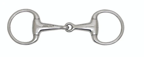 Pony sized Centaur Jointed Eggbutt with genuine Metalab stainless steel construction. This single jointed eggbutt bit has 65 mm pony-sized rings. The smooth jointed mouth is tapered near the center and wider near the cheeks for more pressure dispersal at the bars. Sizes: 3.5, 4.25, 4.5.
