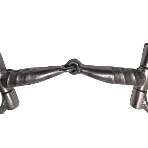 Tom Balding Large Iron Worker Dee has Tom Balding Snaffle mouthpiece with angled ridge. The ridges are found only on the mouthpiece ends, starting near the cheek and extending approximately one inch toward the center, to impact lips and bars. The Large Iron Worker D-Ring Snaffle By Tom Balding Horse Tack has a single jointed mouthpiece that allows quick action. The mouthpiece is curved to lie evenly over the tongue. This heavy, well-balanced Western bit is hand crafted in Sheridan, Wyoming.