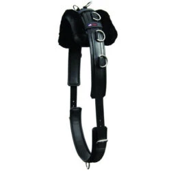 Walsh Signature Padded Fancy Stitch Leather Lead with and black leather. Beautiful and classically elegant leather horse lead is 6 ft long with a 30″ brass chain. The high quality thick supple leather has a padded lining from the hardware end that extends 11″ down the underside of the leather. The garment leather lining is the same color as the leather (the photo shows a different color). The lead has white fancy stitching detail at that end as well. Wonderful luxury look for your show horse!